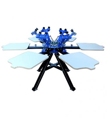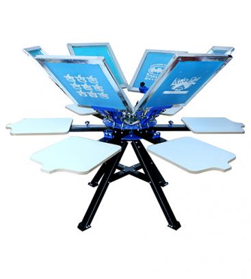 This machine is mainly used for accurate six-color T-shirt over-color printing, equipped with six screen frame chucks and six T-shirt table printing stations. Widely suitable for screen printing t-shirts, garments, towel, leather,umbrella ,clothes and backpack, etc.